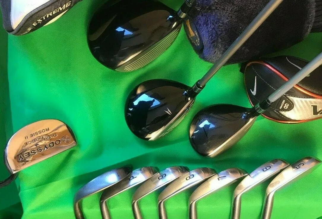 Set of Golf Clubs Srixon Z-TX Irons 5-PW Driver Wood Nike Hybrid Odyssey + Bag
