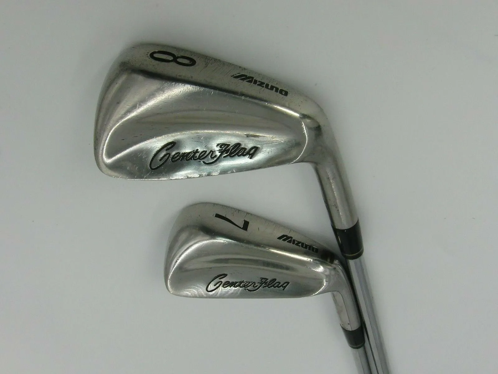 Set Of 2 X Mizuno Center Flag 7 + 8 Irons Regular Steel Shafts Mizuno Grips